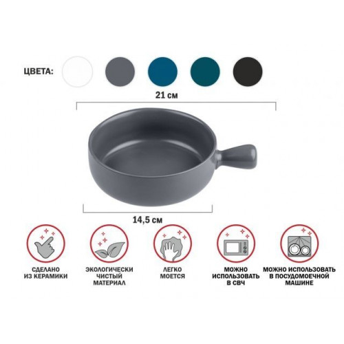Супница керамическая, 21 см, серия ASIAN, серая, PERFECTO LINEA