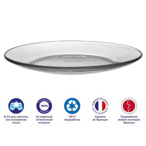 Благодаря актуальному и не подвластному времени дизайну серия ТМ Duralex Lys привнесет нотку элегантности в сервировку стола. Стеклянные тарелки понравятся вашим гостям и подчеркнут Ваши лучшие блюда. Ударопрочное стекло обеспечивает привлекательный внешний вид и устойчиво к появлению царапин. Стеклянная посуда ТМ Duralex производится во Франции с 1945 года. Процесс закаливания придает стеклу ТМ Duralex особую прочность. Во время закаливания стекло ТМ Duralex , предварительно нагретое до 700°С, подвергается резкому охлаждению холодным воздухом. Этот процесс делает стекло ТМ Duralex в 2,5 раза более устойчивым к механическим повреждениям, чем отожженное стекло. Характеристики: ударопрочное закаленное стекло, термостойкость до 130 ° C (EN 1183), можно мыть в посудомоечной машине, подходит для использования в микроволновой печи.