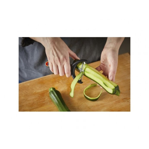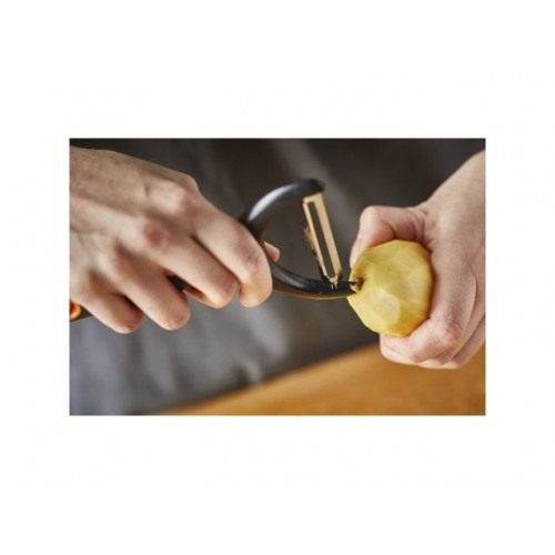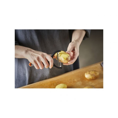 У-образный корпус овощечистки FISKARS FUNCTIONAL FORM выполнен из высококачественного, экологически безопасного пластика. Нескользящая поверхность ручки позволяет надежно удерживать инструмент в руке, не боясь, что он может выскользнуть. Главным преимуществом такой овощечистки является гигиеничность, практичность и эргономическое строение. Таким образом, при использовании данного кухонного приспособления, можно легко и качественно, а главное очень быстро, снять кожуру из таких продуктов, как морковь или огурцы.