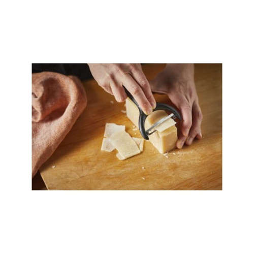 Острое лезвие овощерезки выплавлено из высококлассной закаленной стали, которая не поддается коррозии. Режущая кромка надежно прикреплена к ручке, что гарантирует надежность и безопасность чистки. Плавающее лезвие овощечистки делает процесс снятия кожуры более эффективным и практичным.
