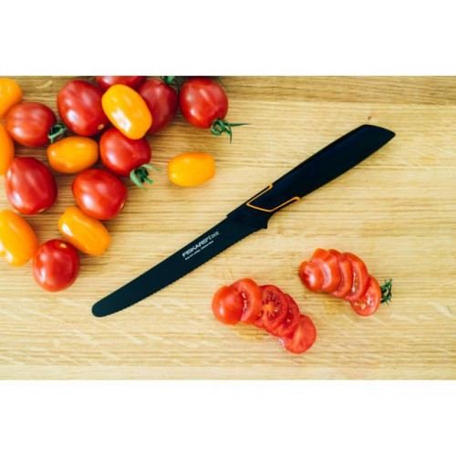 Нож с зубчатым лезвием для нарезания овощей и фруктов с тонкой кожурой.