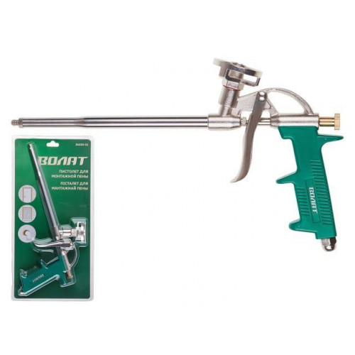 Назначение: применяется для нанесения монтажной пены, обеспечивая намного более точное дозирование и аккуратное ее нанесение, к тому же пистолет предохраняет содержимое баллона от быстрого затвердевания, позволяя тем самым использовать один баллон спустя значительный промежуток времени (при условии, что он останется подсоединен к пистолету, а клапан подачи пены на пистолете будет перекрыт и не будет доступа кислорода),