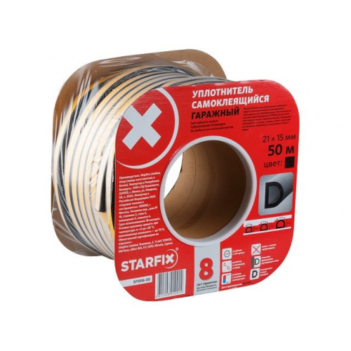 Уплотнитель гаражный "D" черный 21х15мм 50м STARFIX (SF1016-00)