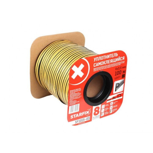 Уплотнитель "P" черный 9х5,5мм 100м (сдвоенный профиль 2х50м) STARFIX