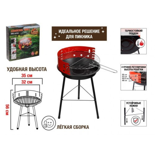 Гриль угольный отличается простой конструкцией, что обеспечивает его быструю сборку и комфортную эксплуатацию: