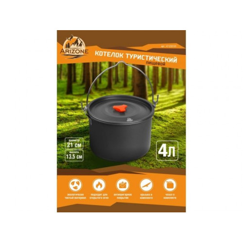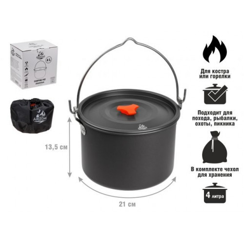 Котелок туристический, 4 л., алюминий, ARIZONE