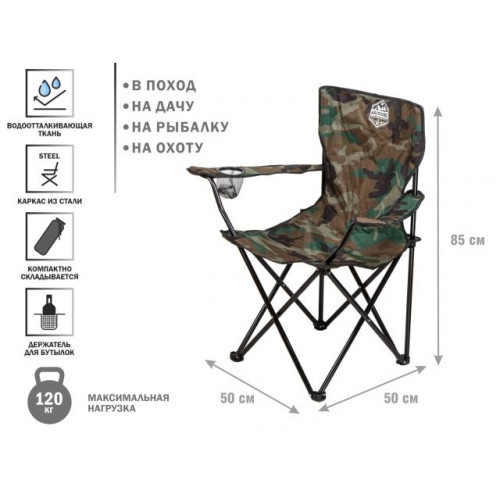 Кресло складное кемпинговое с держателем для бутылок + чехол, хаки, серия Coyote, ARIZONE