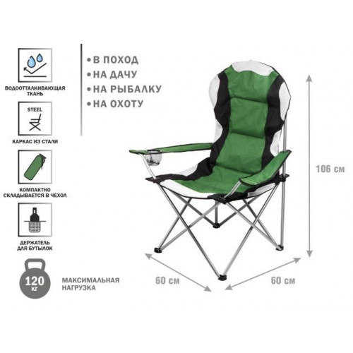 Кресло складное кемпинговое с держателем для бутылок + чехол, зеленое, ARIZONE