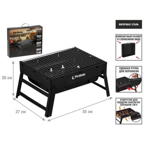 Мангал-барбекю складной с решеткой, 35х27х20 см, сталь, PERFECTO LINEA
