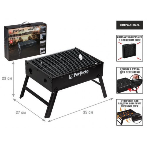 Мангал-барбекю складной с решеткой, 35х27х23 см, сталь, PERFECTO LINEA