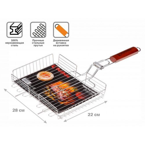 Решетка-гриль, 280x220 мм, нержавеющая сталь, деревянная ручка, PERFECTO LINEA