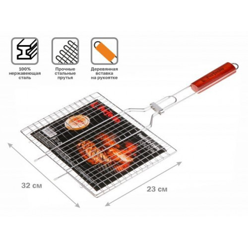 Решетка-гриль, 320x230 мм, нержавеющая сталь, деревянная ручка, PERFECTO LINEA