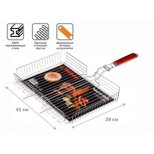 Решетка-гриль, 410x280 мм, нержавеющая сталь, деревянная ручка, PERFECTO LINEA
