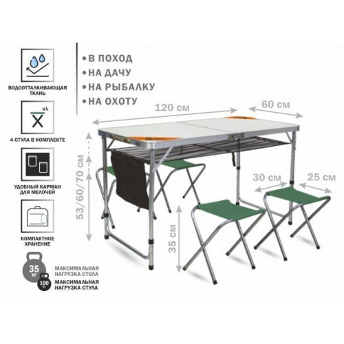Стол складной влагостойкий с карманом для мелочей и 4 стула (набор), ARIZONE