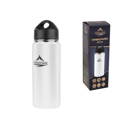 Термобутылка, 600 мл, нержавеющая сталь, белая, ARIZONE