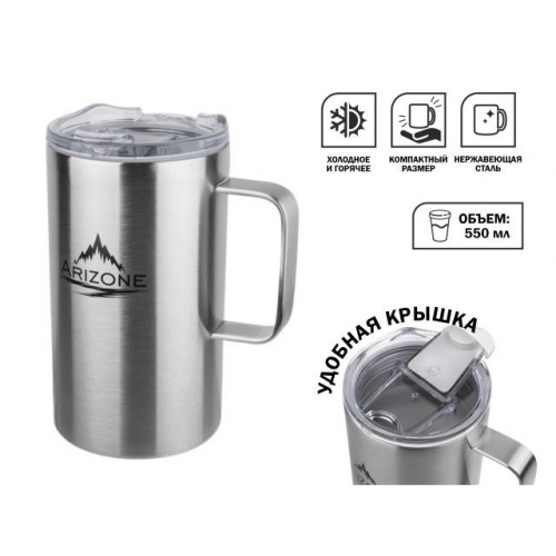 Термокружка, 550 мл, нержавеющая сталь, стальная, ARIZONE