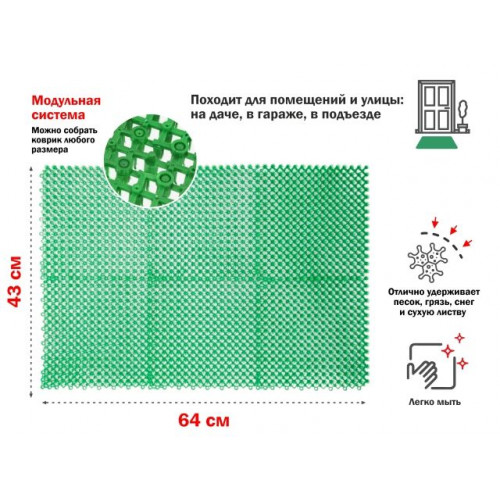 Коврик придверный изготовлен из полиэтилена и представляет собой идеальное решение для защиты вашего дома от грязи и пыли. Этот коврик прекрасно справляется с задачей задержания грязи, благодаря своей прочной и долговечной структуре.