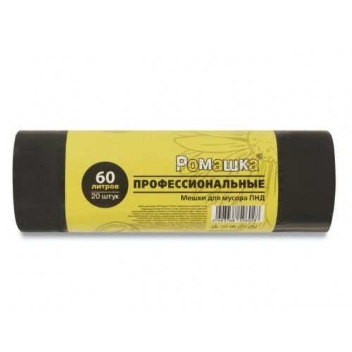Мешки для мусора, 60 л, 20 шт, "Профессиональные", черные, РОМАШКА