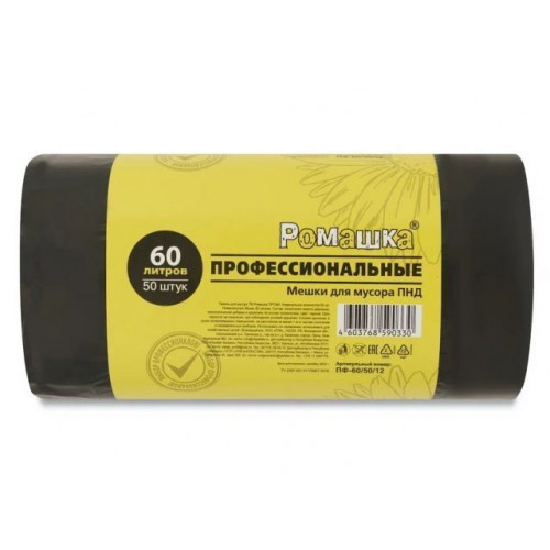 Мешки для мусора, 60 л, 50 шт, "Профессиональные", черные, РОМАШКА