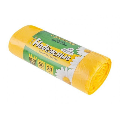 Мешки для мусора в рулоне НАДЕЖНЫЕ (20 шт, 60x74 см, 60 л, ПСД, 15 мкм, желтые с ушками) Ромашка ВЛ07020У используются для строительных и ремонтных работ, хозяйственных нужд в домашнем хозяйстве, в офисе, в производственных и торговых помещениях, индустрии клининговых услуг, красоты и здоровья.