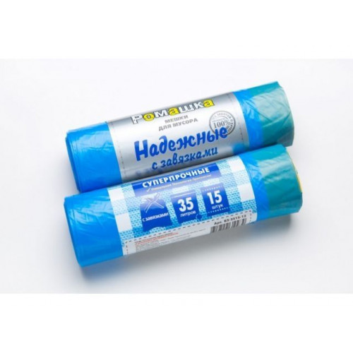 Мешки для мусора с завязками, 35 л, 15 шт, "НАДЕЖНЫЕ", синие, РОМАШКА