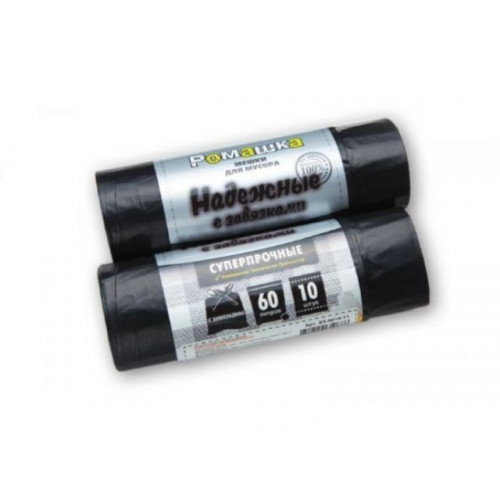 Мешки для мусора с завязками, 60 л, 10 шт, "НАДЕЖНЫЕ", черные, РОМАШКА