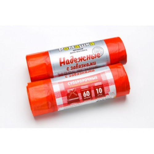 Мешки для мусора с завязками, 60 л, 10 шт, "НАДЕЖНЫЕ", красные, РОМАШКА