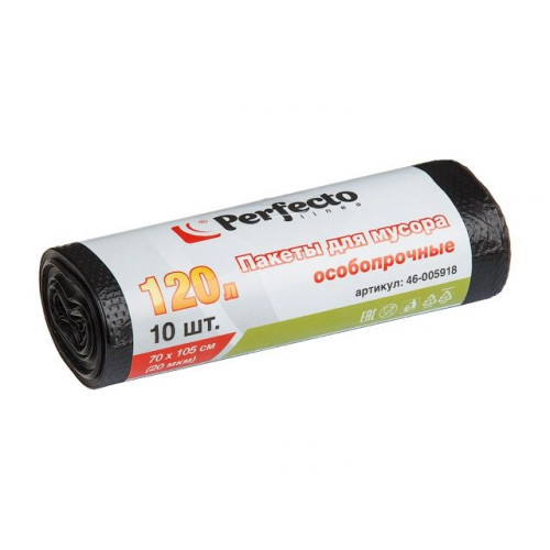 Пакеты для мусора особопрочные, 120 л, 10 шт., PERFECTO LINEA