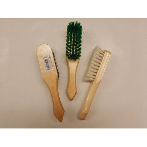 Щётка для одежды сделана из синтетической щетины, колодочки из натурального дерева (береза) покрытые лаком цветным и бесцветным.