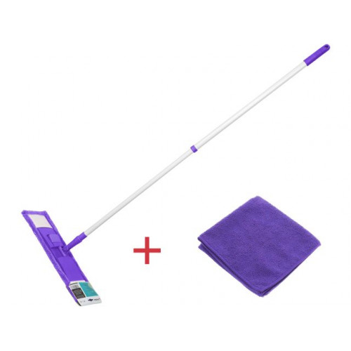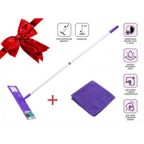 Швабра для пола с насадкой из микрофибры, лиловая + салфетка из микрофибры 30х30 см, PERFECTO LINEA