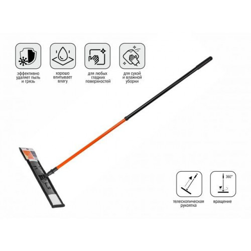 Швабра предназначена для сухой и влажной уборки гладких поверхностей (пола, стен, потолков).