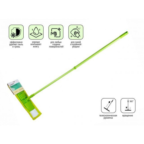 Швабра с практичной ножной педалью. Способна вращаться 360 для удобного использования. Предназначена для сухой и влажной уборки гладких поверхностей (пола, стен, потолков). Идеально подходит для мытья линолеума, паркета, ламината, кафеля. Более гигиенично собирает и удерживает пыль, грязь,жидкость.