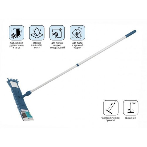 Швабра с практичной ножной педалью. Способна вращаться 360 для удобного использования. Предназначена для сухой и влажной уборки гладких поверхностей (пола, стен, потолков). Идеально подходит для мытья линолеума, паркета, ламината, кафеля. Более гигиенично собирает и удерживает пыль, грязь,жидкость.
