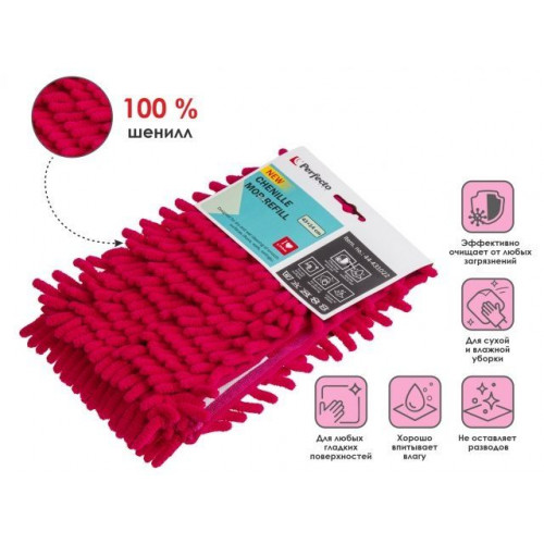 Сменная насадка для швабры из шенилла, фуксия, PERFECTO LINEA