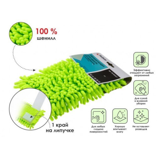 Сменная насадка для швабры из шенилла на липучках, зеленая, PERFECTO LINEA
