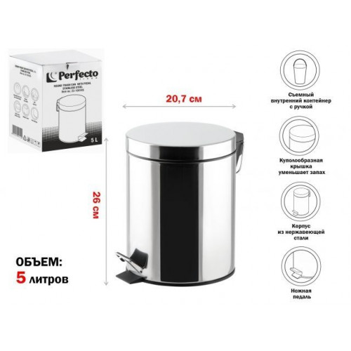 Ведро для мусора с педалью, 5 л, нержавеющая сталь, PERFECTO LINEA