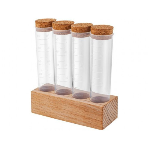 Компактный набор емкостей для хранения специй Sugar&Spice Rosemary на деревянной подставке состоит из 4-х прозрачных емкостей объемом 50мл. Крышка из натуральной пробки плотно закрывается, тем самым специи не впитывают влагу, а их аромат и вкус сохраняются надолго. Благодаря подставке из натурального дерева можно с легкостью решить проблемы с организацией хранения. Прозрачный корпус позволяет быстро найти нужную специю без открытия каждой емкости, а также помогает отслеживать и пополнять запасы. Набор емкостей на деревянной подставке станет украшением интерьера кухни на открытых полках. На каждой колбе имеется мерная шкала, которую можно использовать и для измерения жидкостей до 50мл при готовке по рецепту. Температурный режим: от -5°C до +70°C.