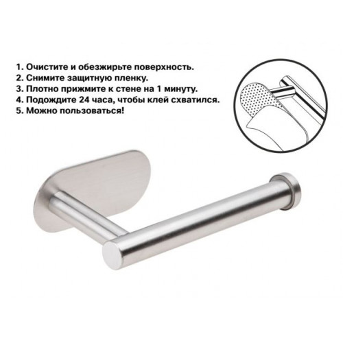 Держатель для бумаги выполнен из нержавеющей стали, обеспечивающаю надежную защиту от влаги и долгий срок службы. Благодаря минималистичному дизайну превосходно вписывается в любой интерьер. Не требует дополнительного ухода, легко очистить от загрязнений. Держатель для туалетной бумаги возможно установить, как горизонтально, так и вертикально. Установка держателя бумаги происходит без сверления и забивания, при помощи клейкой ленты.