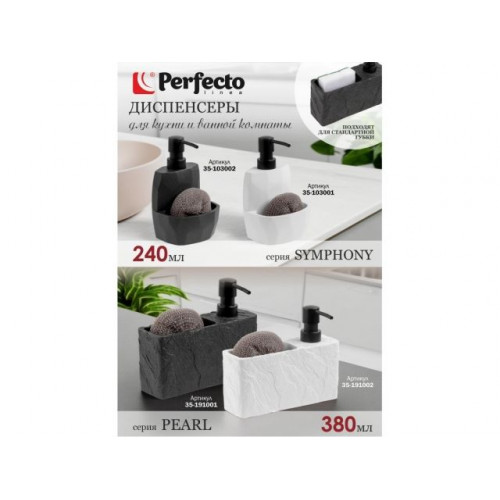 Диспенсер (дозатор) для моющего средства с подставкой для губки PEARL, белый, PERFECTO LINEA