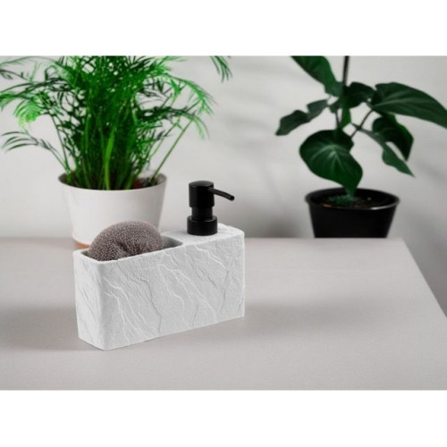 Диспенсер для моющего средства с подставкой для губки PERFECTO LINEA представляют собой великолепное сочетание функциональности и эстетичности, способный украсить не только вашу кухню, но и ванную комнату. Изготовленный из полирезина, имитирующий натуральный камень, он воссоздает непревзойденную красоту и текстуру природы, делая диспенсер не только прочным и стойким к повреждениям, но и универсальным для разных помещений.
