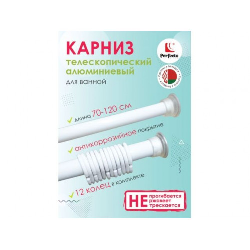 Карниз раздвижной алюминиевый 1,2 м, белый, PERFECTO LINEA