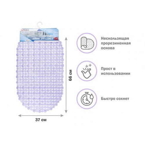 Коврик для ванной, овал 66х37 см, фиолетовый, PERFECTO LINEA