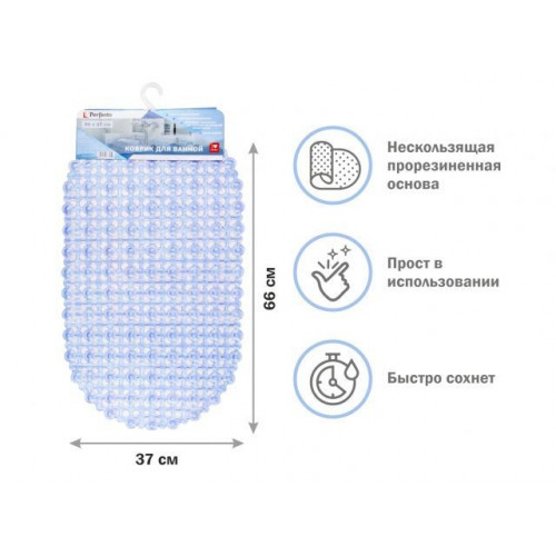 Коврик для ванной, овал 66х37 см, голубой, PERFECTO LINEA
