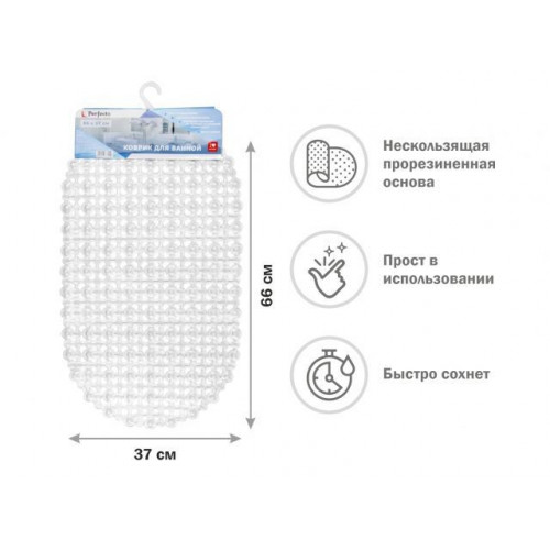 Коврик для ванной, овал 66х37 см, прозрачный, PERFECTO LINEA