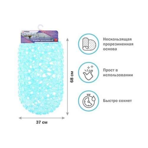 Нескользящая прорезиненная основа предотвращает падение на влажной поверхности. Коврик не выцветает, быстро сохнет. Гигиеничен, так как легко моется.