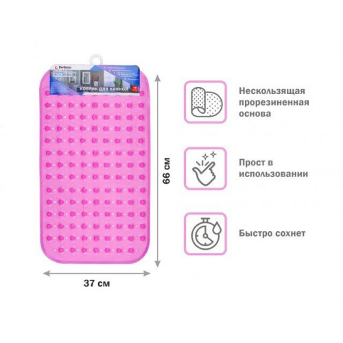 Коврик для ванной, прямоугольный с пузырьками, 66х37 см, розовый, PERFECTO LINEA