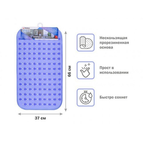 Коврик для ванной, прямоугольный с пузырьками, 66х37 см, синий, PERFECTO LINEA