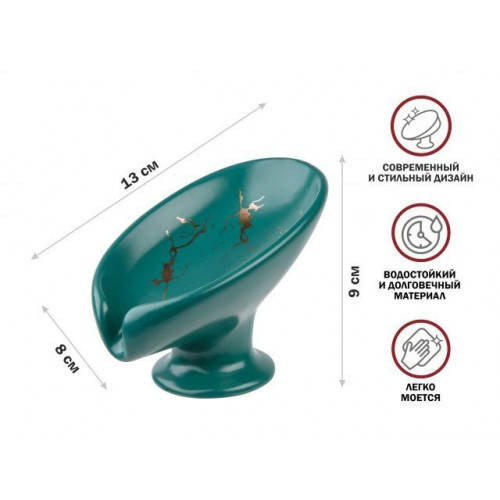 Керамическая мыльница для ванной комнаты выполнена в форме лепестка под наклоном и имеет слив ,благодаря чему вода стекает в раковину, а мыло остается сухим и не растворяется.