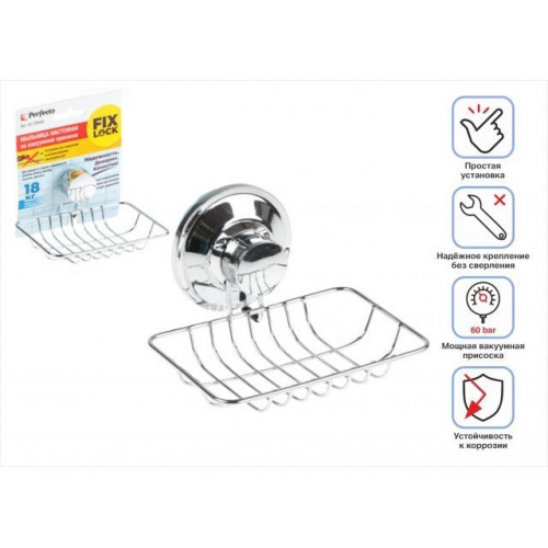 Мыльница настенная на вакуумной присоске, хром. сталь, FIX LOCK, PERFECTO LINEA