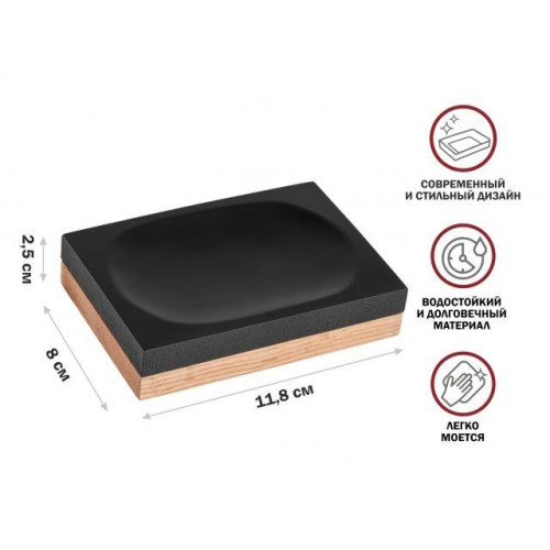 Мыльница WOOD BLISS, черная, PERFECTO LINEA